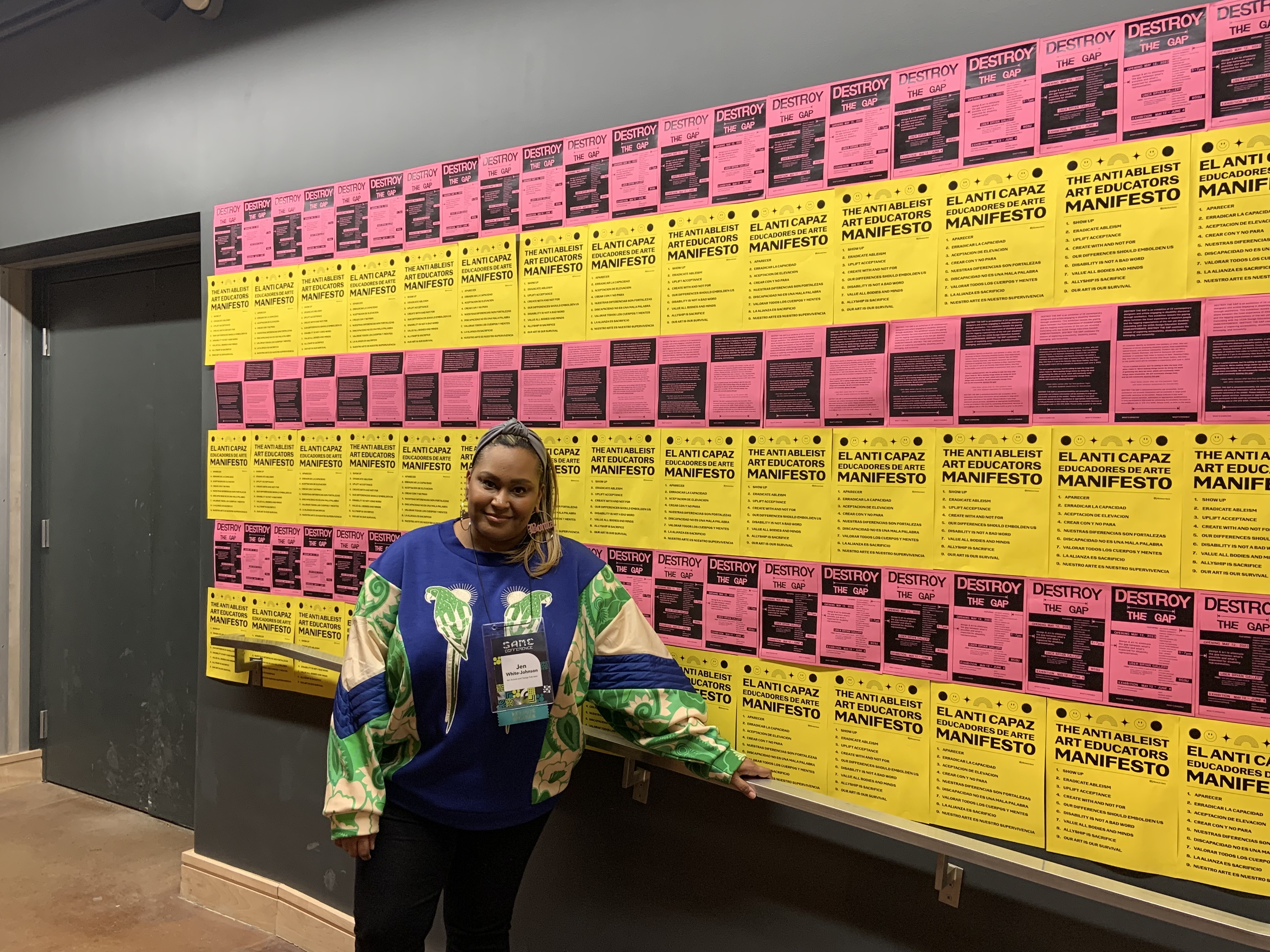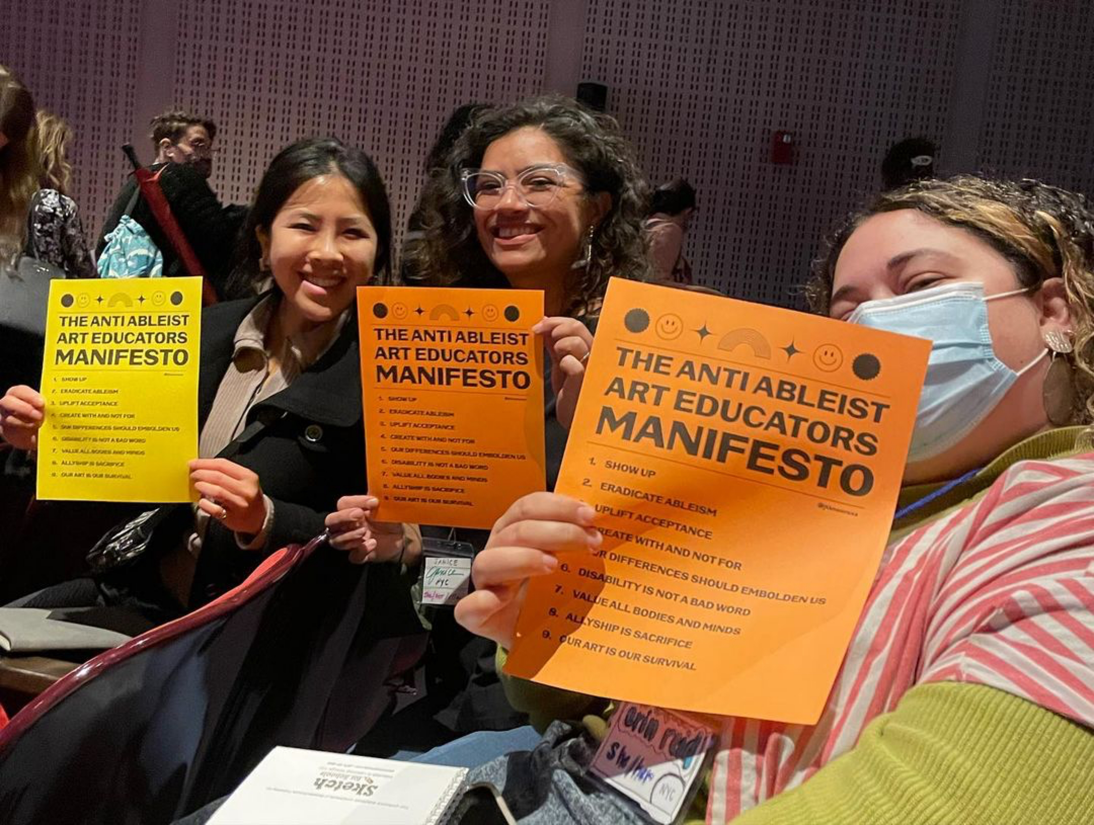 The principles raised in The Anti-Ableist Art Educators Manifesto are meant to call out and dismantle the oppression and demonization brought upon Black and Brown disabled community, specifically students that are fueled by ableism. Anti-Ableism and Collective liberation stems from the understanding that we have struggles that are all deliberately and intimately connected and that working together, through community, allows us to use the labor of love-justice to transform justice. To create more anti-ableist spaces this manifesto asks the community to collectively Show Up, Eradicate Ableism, Uplift Acceptance, Create with and Not For, Allow our Differences to Embolden us, Declare that Disability is not a Bad Word, Value all Disabled Bodies and Minds, Know that Allyship is sacrifice, and Realize that Art is connected to the survival of Black and Brown Disabled communities.